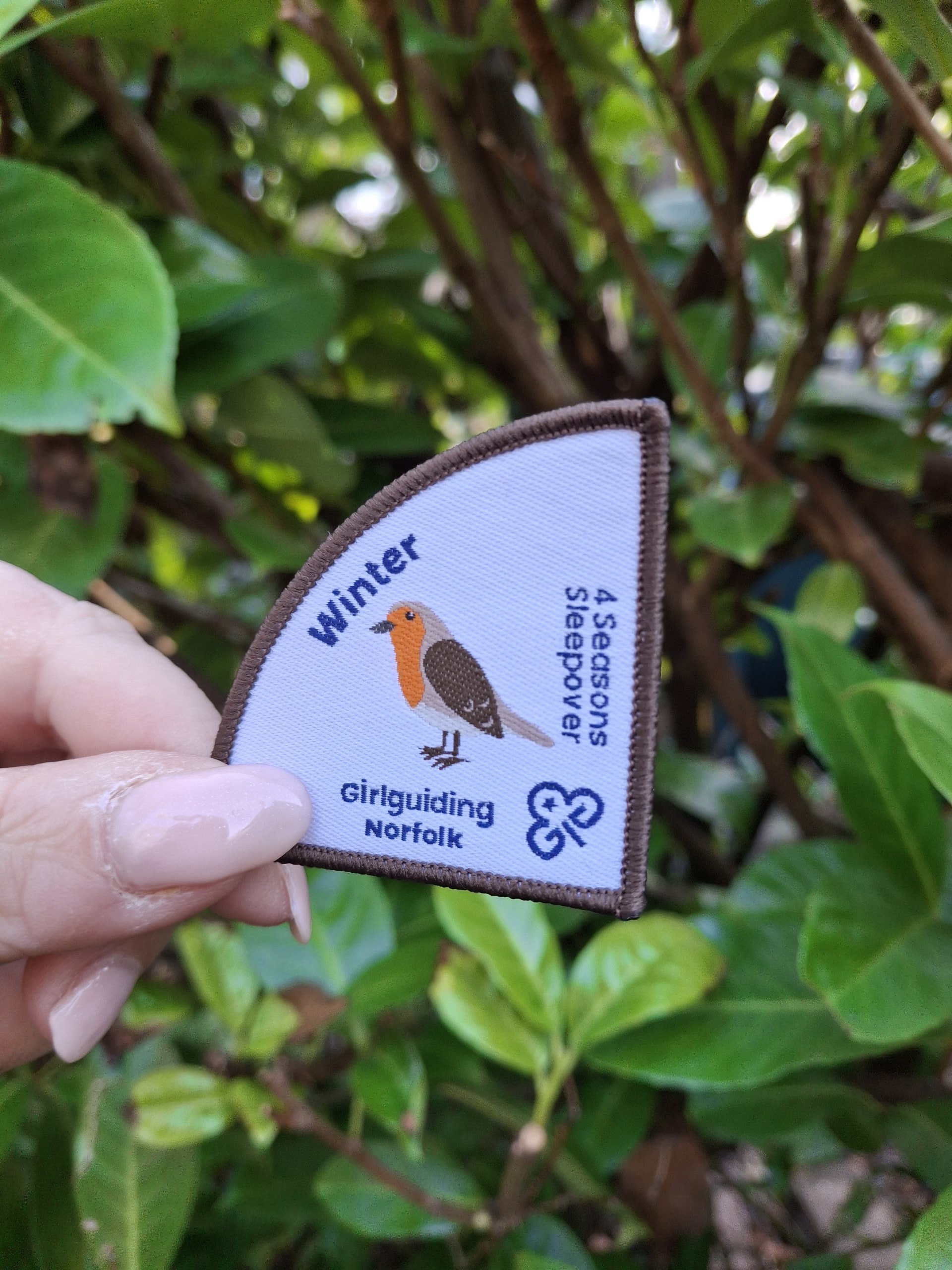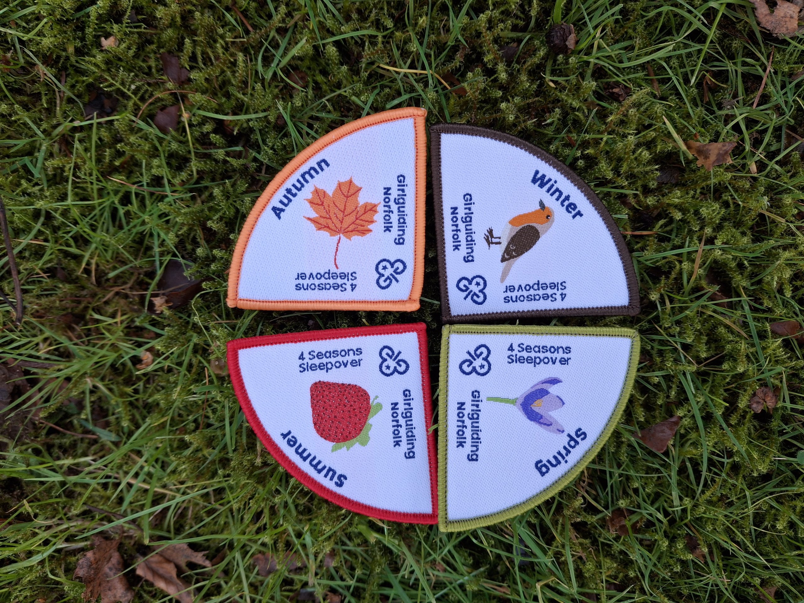 Woven, 4 Seasons Sleepover Badges, available separately or as a set. Each badge is 2” along the straight side. When all 4 are sewn together diameter 4”.